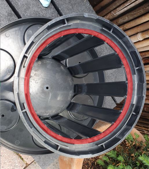 Alternativ können Sie den Ring entfernen, der im Bild oben gekennzeichnet ist (rot eingefärbt), und dann können Sie den EGO3 Filter und den Tischskimmer immer gleichzeitig verwenden.
